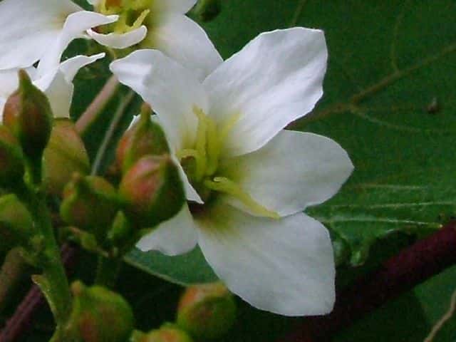 | ▼葉柄の上端に腺が2個ある。 | ▼葉の裂け目にも腺がある。 | |