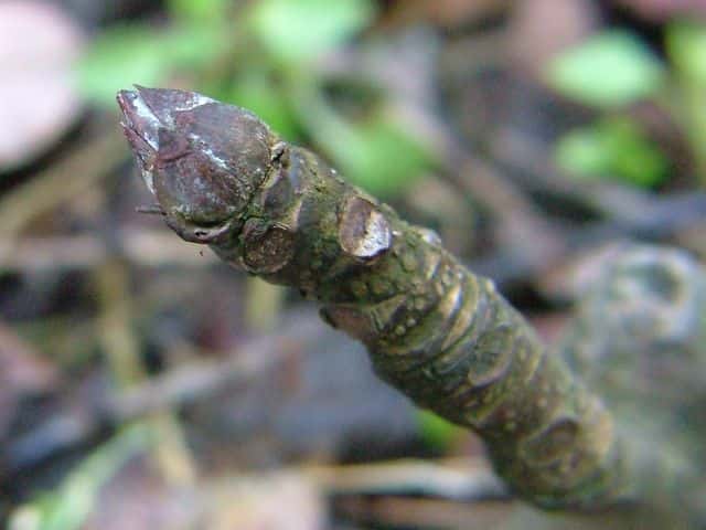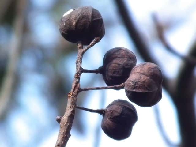 | ▼種子が5個ある。通常は3個。 | ▼種子は直径約1.5cm。 | ▼冬芽は頂芽のみが発達する。 |