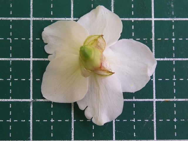 | ▼花は直径約2cm。 | ▼2裂した花柱。 | |