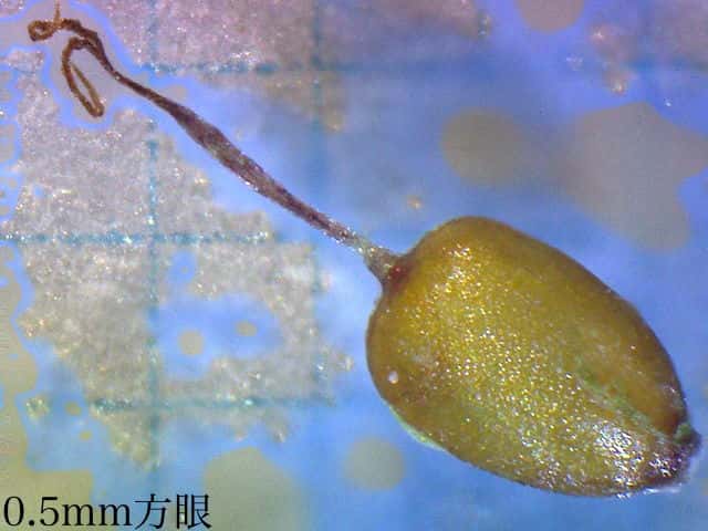 | ▼鱗片の竜骨に刺がある。 | ▼大きな鱗片の基部に小さな鱗片が2個ある。 | ▼柱頭は2岐、果実は長さ約1mm。 |