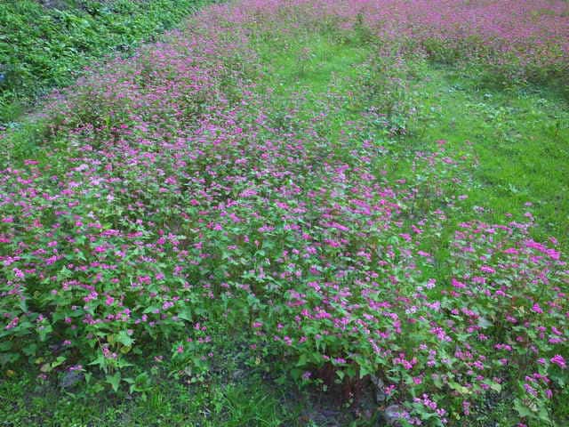 ヒマラヤ原産の赤やピンクの花を咲かせる品種。品種改良され「高嶺ルビー」と名付けられ各地で栽培される。別名アカソバ。花期は9〜10月。