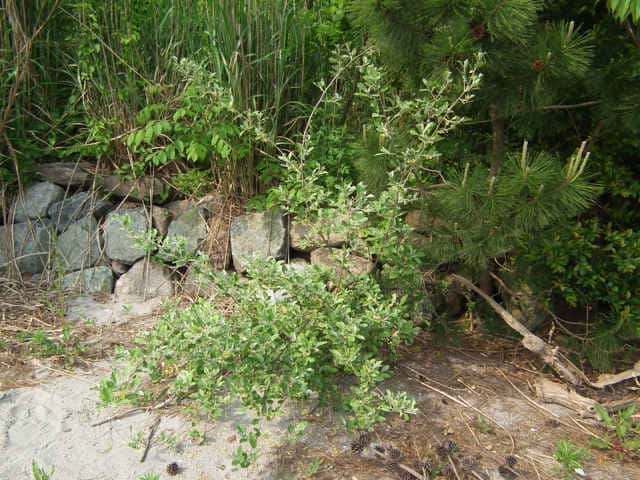 | 落葉低木 北海道渡島半島〜九州の河原や原野、道ばた、川岸など、日当たりのよいところに生える。高さ2〜3m、大きいものは高さ5m、直径20cmほどになる。樹皮は灰黒色。本年枝は銀色の鱗状毛が密生して白い。葉は互生。葉身は長さ4〜8cm、幅1〜2.5cmの長楕円形〜披針形。先は鈍く、基部はくさび形。縁は全縁。室は薄く、表面には銀色の鱗状毛がある。鱗状毛は果実が熟す頃には脱落する。裏面は銀色の光沢のある鱗状毛に覆われ、褐色または淡褐色の鱗状毛がまばらにある。葉柄は長さ5〜10mm、銀色の鱗状毛が密生する。葉腋に1〜6個の花が垂れ下がってつく。花ははじめ白色で、しだいに黄色を帯びる。萼筒は長さ5〜7mm、子房の上部で少しくびれる。萼片は4個、長さ約4mmの三角形で、先は鋭くとがる。花柄は長さ3〜5mm。萼筒、萼片、子房、花柄には銀色の鱗状毛が密生する。果実は偽果。直径6〜8mmの球形〜楕円状球形で、9〜11月に赤く熟す。表面には赤褐色や白色の鱗状毛がある。果柄は短く、直立または湾曲する。種子は長さ4〜5mmの楕円形で、表面に溝が8個ある。花期は4〜5月。 冬芽の頂芽は長さ5mmほど。幼葉が3〜4個あり、褐色の鱗状毛に覆われ、銀色の鱗状毛が少し混じる。側芽はやや小さい。(樹に咲く花) 学名は、Elaeagnus umbellata グミ科グミ属 葉の表面に星状毛のある変種のカラアキグミや、海岸には変種のマルバアキグミがある。 |