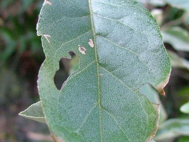 | ▼葉裏には鱗状毛が密生する。 | ||