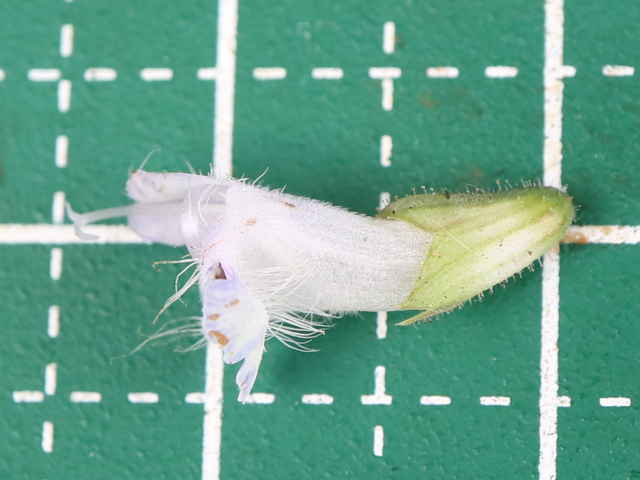 | ▼花は長さ約1cm。 | ▼花の上下幅は約6mm。 | ▼萼の腺毛。 |