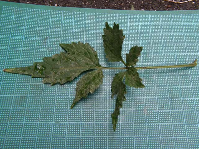 | ▼小葉は長さ約5cm。 | ▼葉の裏面 | ▼上部の葉は単葉。 |