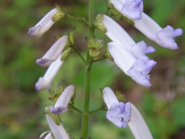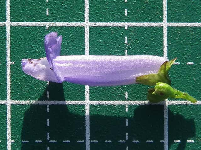| 多年草 岐阜県以西〜九州の山の木陰に生える。地下茎は木質、茎は方形で高さ70〜100cm、稜に下向きの毛がある。葉身は長さ7〜15cm、幅2.5〜5cm、まばらに毛があり、基部はくさび状の翼となって葉柄に移行する。茎頂及び葉腋にやや偏側生の細長い花穂を作って花をつけ、花序には細毛がある。萼は下側で長さ2.5mm(果時には6〜7mmで脈は目立つ)、上唇は3裂し裂片は3角形でやや鈍頭、下唇は長く2浅裂して裂片は鈍頭。花冠は青紫色、長さ1.7〜2cmで基部背面はふくらむ。分果は球形で長さ約2mmの球形、平滑。花期は8〜10月。(原色日本植物図鑑) 学名は、Isodon longitubus シソ科ヤマハッカ属 関東・中部地方に分布するセキヤノアキチョウジは萼が細く尖ることや花柄の長いことで見分ける。 |