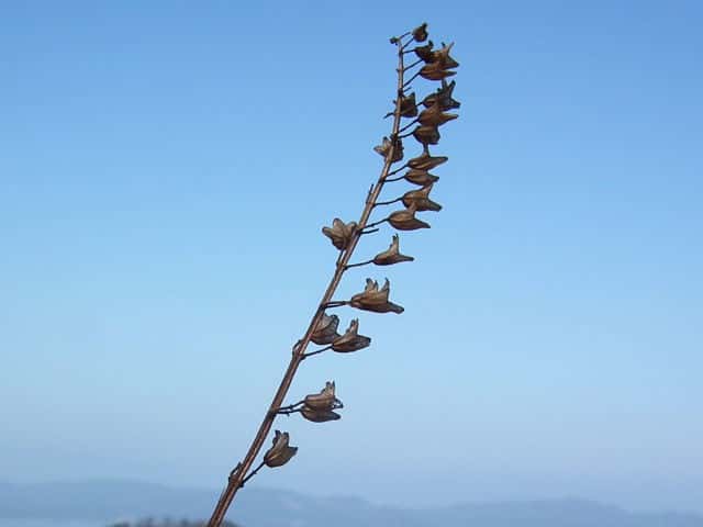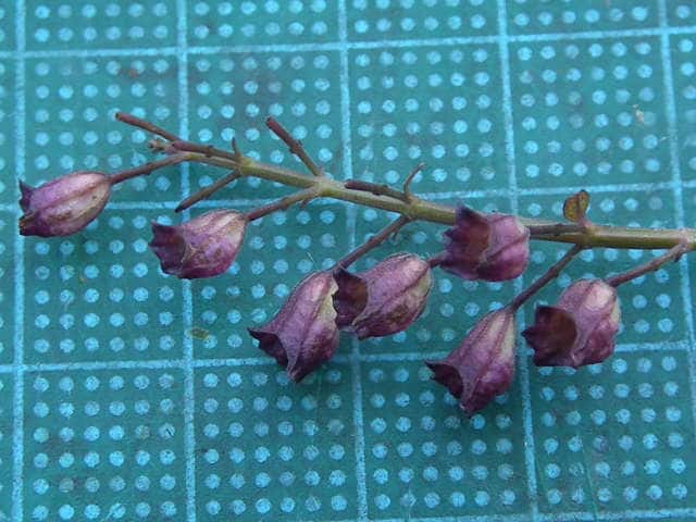 | ▼苞葉の腋から花序柄が出る。 | ▼花は同じ方向に偏ってつく。 | |