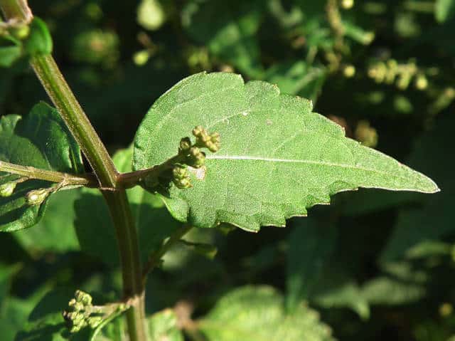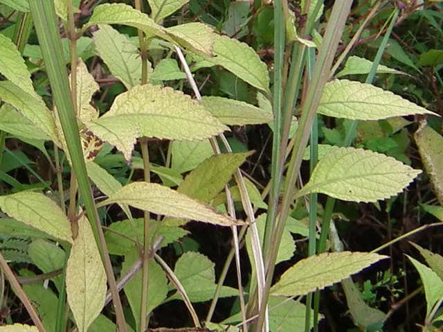 | ▼葉は狭卵形、葉身は長さ6〜7cm。 | ||