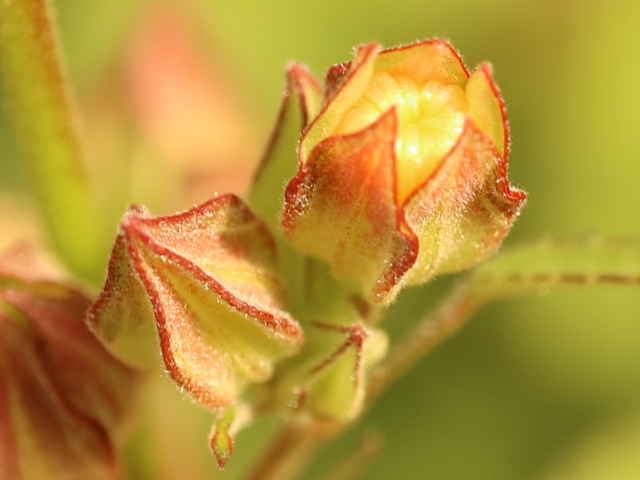| ▼花柄は長さ約1cm。 | ▼熟すと萼が開く。 | ▼果実は5分果がある。 |
