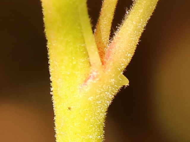 | ▼葉柄基部に線形の長い托葉がある。 | ▼托葉の基部にも突起がある。 | |