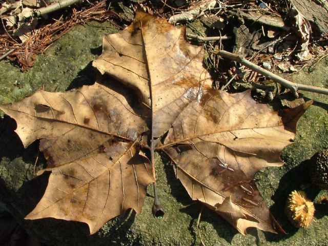| 落葉高木 北アメリカ東部原産。ふつう高さ20m、直径40cmほど、大きいものは高さ40mを超える。ほぼ球形から楕円形の樹冠をつくる。樹皮は暗褐色で縦に割れ目が生じ、小さくはがれて淡黄色の木肌が現れる。本年枝は赤褐色〜黄褐色で無毛。小さな皮目がある。葉は互生。葉身は長さ7〜20cm、幅8〜22cmの広卵形で、掌状に3〜5浅裂。ふちには不ぞろいの歯牙がある。基部は切形〜ハート形。表面は光沢のある緑色で、裏面は淡緑色。はじめ両面とも星状毛が密生するが、しだいに落ち、裏面の脈腋以外は無毛になる。托葉は膜質で筒状、ふちには鋸歯がある。雌雄同株。直径1.5cmほどの球形の花序が花序の軸にふつう1個、まれに2個つく。果実はそう果。直径3cmほどの球形の集合果をつくる。そう果は長さ約1cm、先端はまるく、基部には長い毛が密生する。花期は4〜5月。 冬芽は長さ5〜10mmの卵形。無毛で赤褐色の1個の芽鱗に包まれる。葉痕は冬芽の回りを囲む。維管束痕は多数。(樹に咲く花) 学名は、Platanus occidentalis スズカケノキ科スズカケノキ属 中近東原産のスズカケノキとアメリカスズカケノキの雑種がモミジバスズカケノキで街路樹としてよく植栽されている。モミジバスズカケノキはプラタナスと呼ばれ、葉は3〜5裂するがアメリカスズカケノキよりは深く切れ込み、果実はほとんどが1つの柄に2個〜3個つく。 |