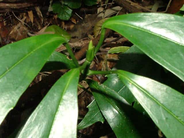 | 常緑低木 北海道南部〜沖縄の照葉樹林内に多いが、明るい雑木林や植林地にも生える。上部でよく枝分かれし、高さ2〜3m、直径6cmほどになる。樹皮は緑色で灰褐色の細い溝があり、横長の皮目がある。老木は灰褐色で、縦に細かく裂ける。若い枝は緑色で無毛。光沢がある。葉は対生。枝の上部に集まってつく。葉身は長さ8〜25cm、幅2〜12cmの卵状長楕円形。先端はとがり、基部は広いくさび形、縁の上半部に粗い鋸歯がある。質は厚く、表面は深緑色で光沢がある。両面とも無毛。乾くと黒くなる。葉柄は長さ1〜6cmで無毛。上面に浅い溝がある。雌雄別株。前年枝の枝先に円錐花序をだし、紫褐色の小さな花を多数つける。雌雄とも花は直径約1cm。花弁は4個。長卵形で先端は鋭くとがる。雄花には雄しべが4個あり、葯は淡黄色。雌花は中央に花柱があり、雄しべはない。萼筒は長卵形で、先端に萼歯が4個ある。果実は核果。長さ1.5〜2cmの長楕円形または卵状長楕円形で12月〜5月に赤く熟す。表面は光沢があり、中に核が1個入っている。核は長さ1.3〜1.5cm、幅7〜8mmの長楕円形。中央に溝がある。果実が枝についている期間が長く、しばしば花と果実がいっしょに見られる。花期は3〜4月。 冬芽は長さ2cmほどの紡錘形。緑色で、先きの尖った芽鱗が3対あり、基部の1対は短い。葉痕は三角形状の半円形、維管束痕は3個。(樹に咲く花) 学名は、Aucuba japonica var. japonica アオキ科アオキ属 「葉緑体DNA多型からみる日本列島広域分布種の分布変遷 大井 哲雄」によると 『基準変種であるvar. japonicaアオキ(狭義)は、岩手県を北限に東北〜四国東部の太平洋側に分布し、染色体数が2n=32の4倍体です。中国・四国地方以西の西日本〜沖縄には、外部形態ではアオキに類似しますが、染色体数が2n=16で2倍体であることから区別される var. ovoideaナンゴクアオキが分布します。そして北海道西南部から日本海側の多雪地域には、4倍体で、植物体が小さく、枝が匍匐し、若い枝や葉に短毛が生える点で区別されるvar. borealisヒメアオキが分布します。』とある。 見分け方:人と自然の博物館 分布の論文:アオキ(アオキ科)の細胞地理学的研究 アオキとナンゴクアオキの葉の比較 |