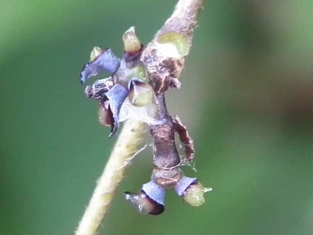 | ▼2004年7月25日 雄花 上乃木 | ▼丸いのは萼、細く先が2裂する花弁。 | |