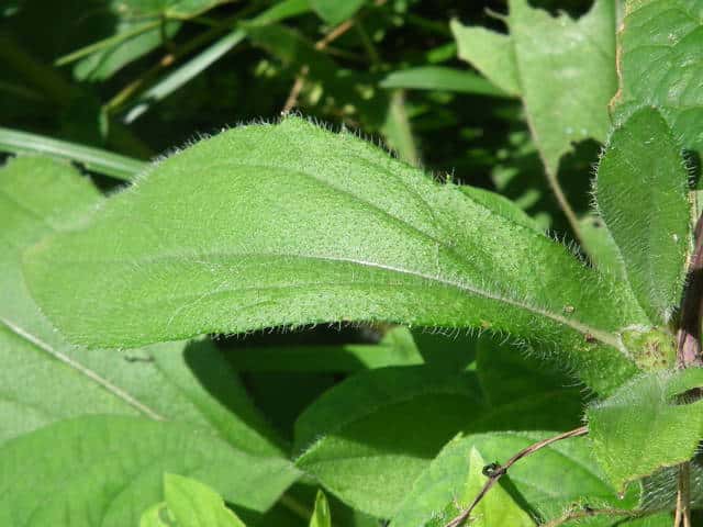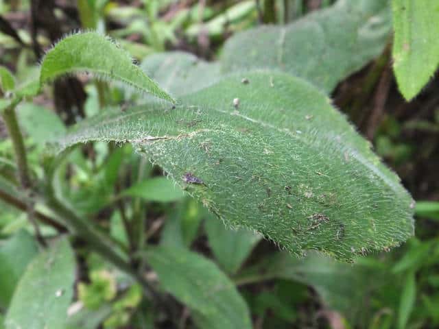 | ▼中部の葉はほとんど無柄。 | ▼毛が密生する。 | |