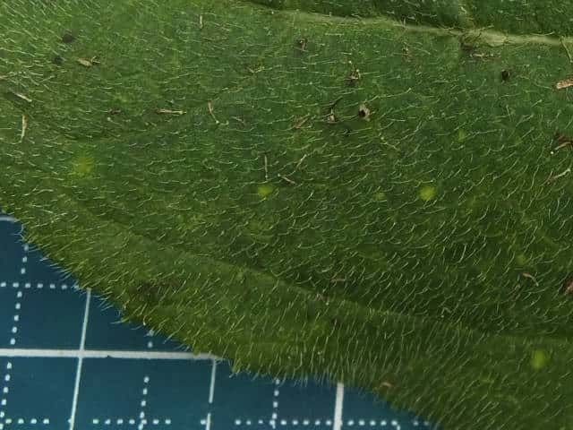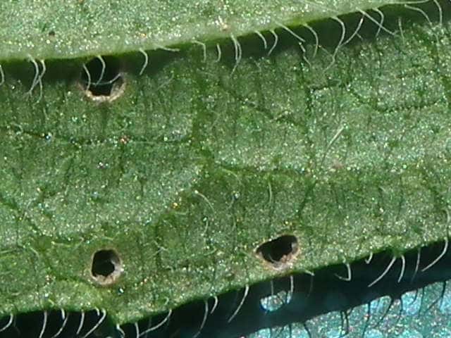 | ▼裏面脈上に毛が多い。 | ▼毛の基部が赤褐色に膨らむ。 | |