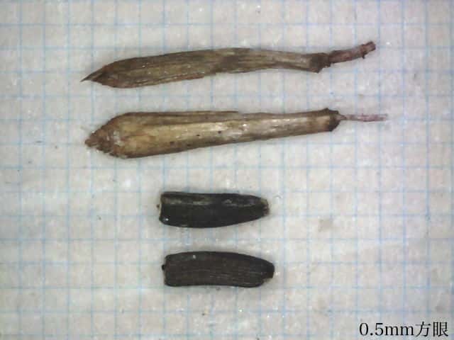 | ▼鱗片は果実より長い。 | ▼鱗片は長さ約5mm。 | ▼鱗片の先端部に白毛がある。 |