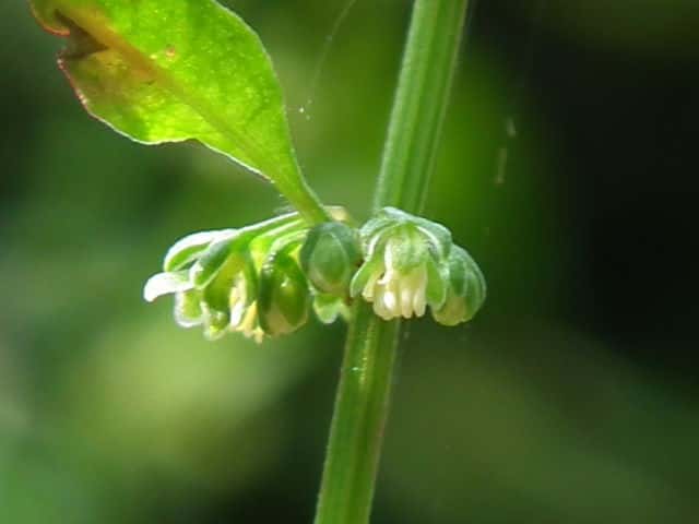 | ▼花は長さ約2.5mm、直径2.5mm。 | ▼雄しべ除いた。外花被片3個、内花被片3個。 | ▼内花被片の中に子房がある。 |
