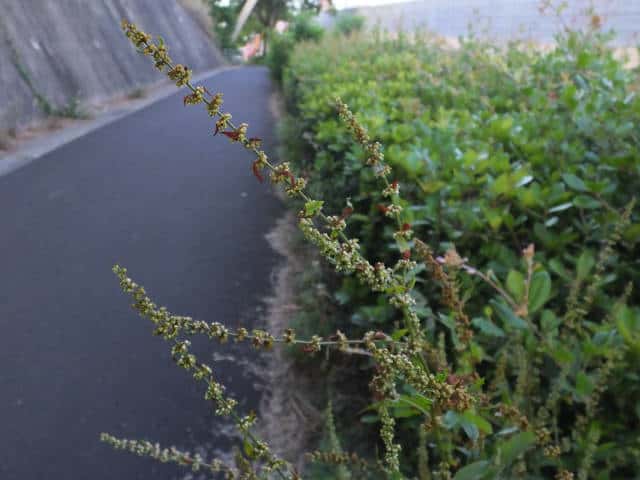 | ▼花穂は細く、まばらに花序がつく。 | ||