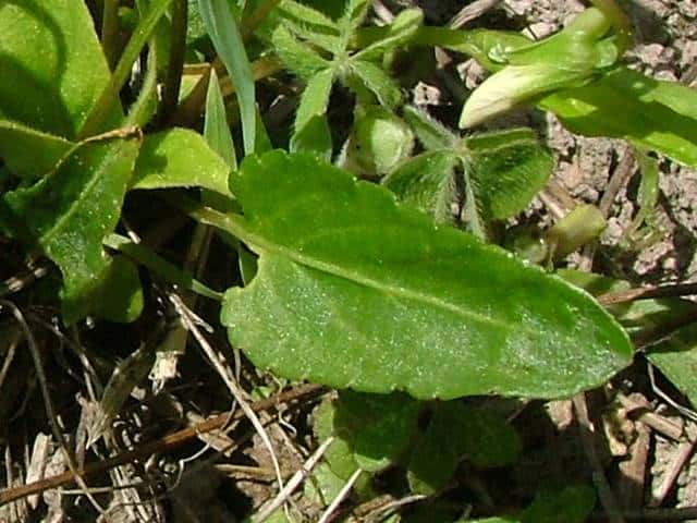 | ▼葉の裏面。 | 距は太くて短い。 | |