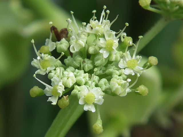 | ▼花盤に蜜が出ている雄性期の花。 | ▼花は直径約4mm。 | |