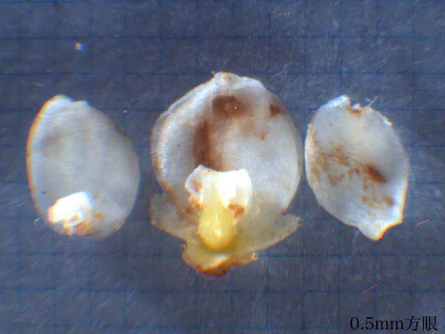 | ▼花は直径約4mm。 | ▼外側の3個の花弁は大きい。 | |