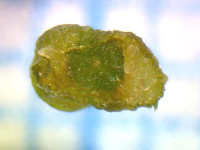 | ▼若い果実は長さ約4mm。 | ▼萼を取り除いた果実。 | ▼果実の横断面(形が潰れてしまった)。 |