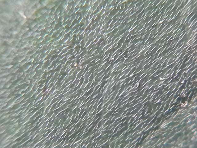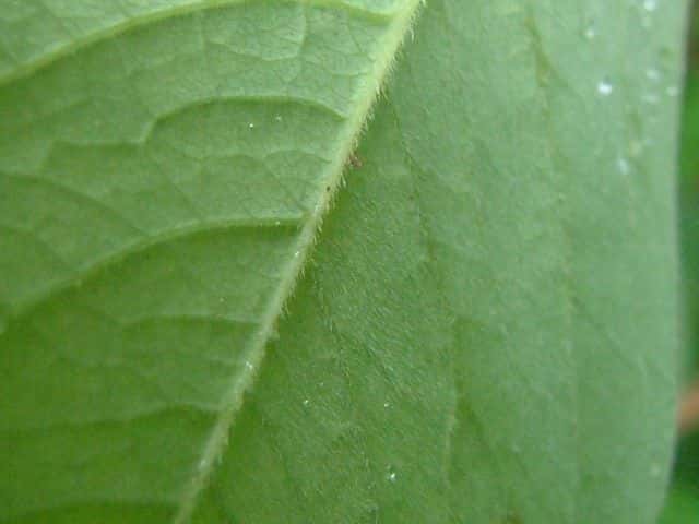 | ▼葉の表面に細かい毛が密生する。 | ||