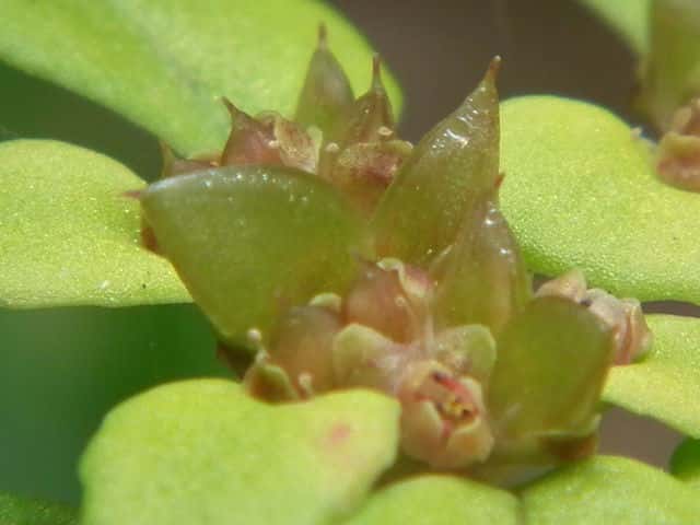 | ▼葉は葉柄を含めて長さ約2cm。 | ▼苞葉は柄を含めて長さ約1.2cm。 | |