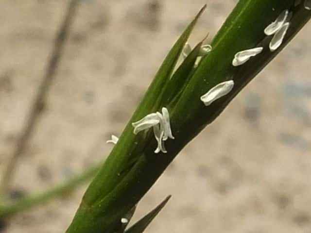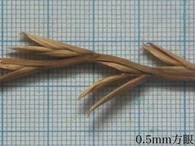 | ▼小花は長さ約4.5mm。 | ▼護穎に長さ約0.5mmの短い芒があるものもある。 | ▼内穎と護穎は同長。 |
