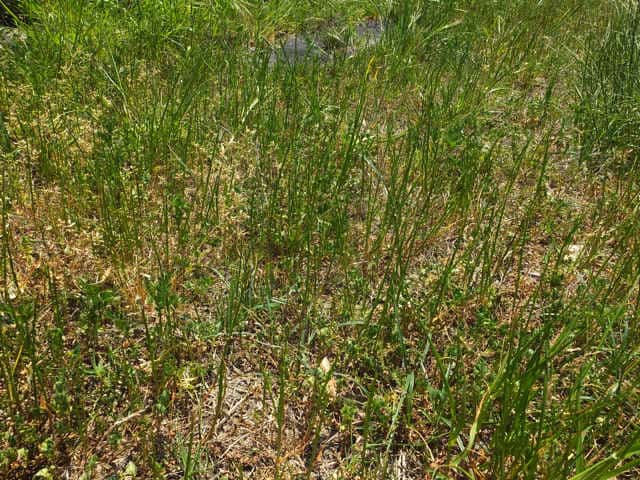 | 1〜2年草 ヨーロッパから極東アジアにかけての原産で海岸や砂地にしばしば帰化している。稈は基部で少数分岐して直立し、高さ50cmほどになる。葉は線形で幅5mm、長さ20cm程度。長さ30cmほどの分岐しない穂を出し、長さ1〜2cmで8前後の小花からなる小穂を互い違いにつける。小穂はやや革質でそり返った第2苞穎に完全に覆われる。穂軸はざらつく。花期は春〜夏。(日本帰化植物写真図鑑) 学名は、Lolium rigidum イネ科ネズミムギ属 |