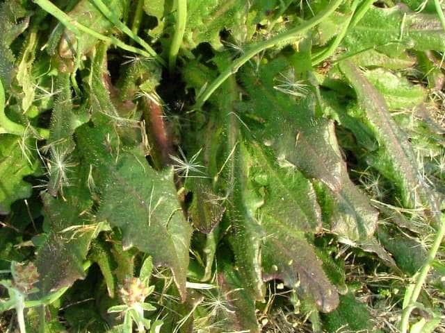 | ▼果実には刺状の上向き微小突起が密生する。 | ▼冠毛は羽状に分岐する。 | ▼花茎には鱗片状の葉がつく。 |