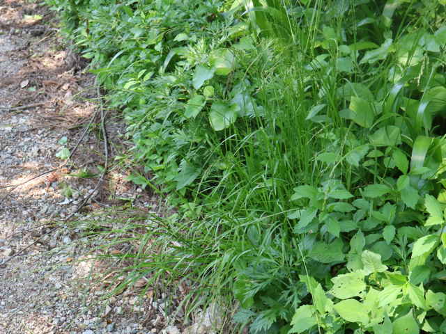 | 多年草 北海道〜沖縄の低地の湿地や水田のあぜなどに生育し、散生またはやや群生する。茎の基部は短く屈曲し、上部は斜上し、平滑・無毛、葉は平滑・無毛、葉舌は膜質・切形、長さ1〜1.5mm。葉鞘は完全な筒形、上縁に耳状の突起があり、平滑・無毛。花序は長さ20〜30cm、各節より2〜3本の細い枝を出し小穂を着ける。小穂は狭長、長さ9〜12mm、5〜9小花からなる。第1苞穎は長さ1.5mm、第2苞穎は2mm。小花は長さ2.5mm。果実は楕円形、腹面はくぼみ、光沢があり茶褐色、長さ1〜1.4mm。花期は5〜6月。(日本イネ科植物図譜) 学名は、Glyceria ischyroneura イネ科ドジョウツナギ属 |