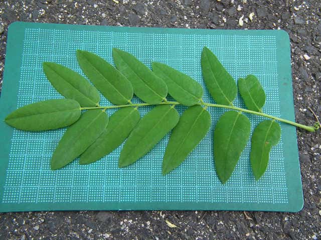 | ▼葉は奇数羽状複葉。 | ▼葉は葉柄を含めて長さ約21cm。 | ▼小葉は長さ5〜5.5mm、無毛。 |
