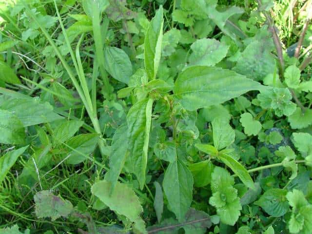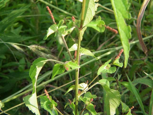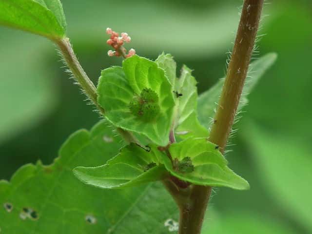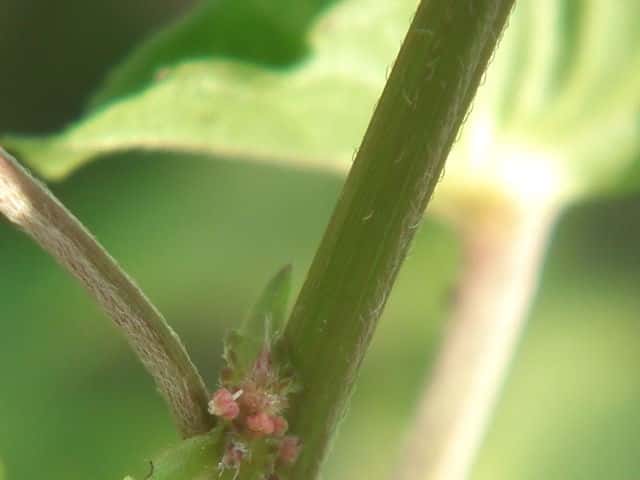 | 1年草 日本全土の畑や道ばたなどに生える。高さ30〜50cm。葉は互生し、長さ3〜8cmの長楕円形〜広披針形で鈍い鋸歯があり、先はやや尖る。花序は葉腋につき、上部に小さな雄花が穂状につき、基部に編笠状の総苞に抱かれた雌花がつく。雄花は小さく、8個の雄しべが膜質の花被に包まれ、開花すると花被は4裂する。雌花の花被は深く3裂し、軟毛が多い。子房は球形で、表面には小さい突起と軟毛が密生し、果期にも残る。花柱は3個で、先端が糸状に裂ける。さく果は直径約3mmの球形で、中に直径1.5mmぐらいの種子が3個入っている。花期は8〜10月。(野に咲く花) 学名は、Acalypha australis トウダイグサ科エノキグサ属 参考雌花図 中国植物誌 |
