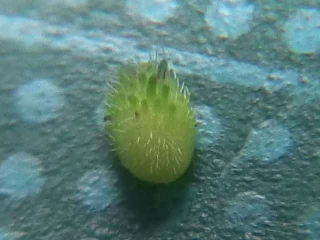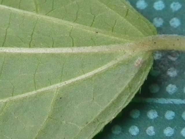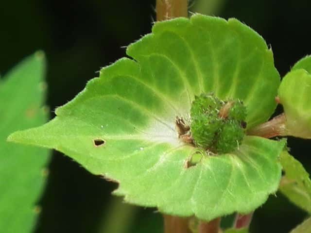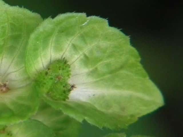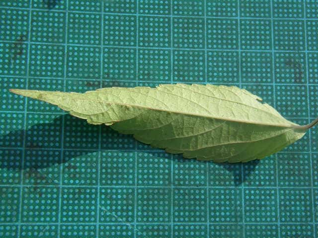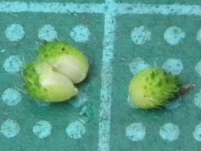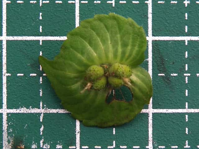 | ▼3個の種子がある。 | ▼葉は長さ約5cm。 | |