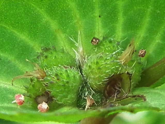 | ▼2014年9月8日 東忌部 | ▼総苞の中に1〜4個の雌花がある。 | |