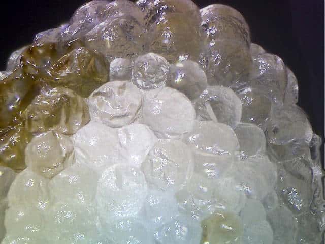 | ▼種子の表面は球状の突起に覆われている。 | ||
