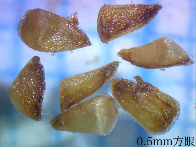 | ▼種子は長さ0.8〜1mm。 | ▼種子は稜のある円錐形。 | |