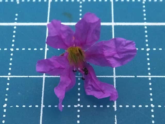 | ▼萼の中に柱頭や雄しべが残った果実がある。 | ▼果実は長さ約3.5mm。 | ▼種子は長さ約1mm。 |