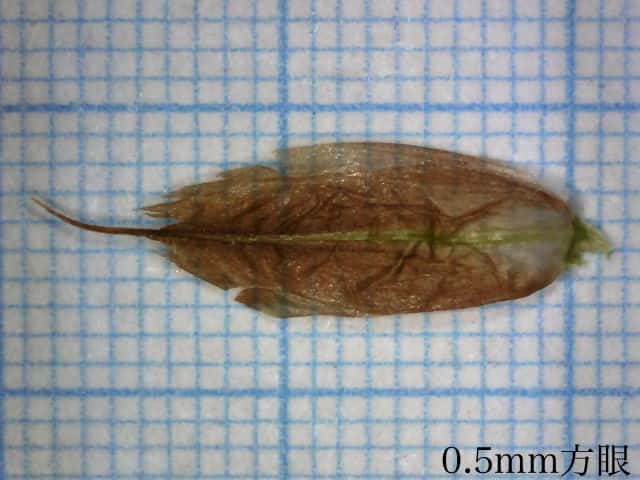 | ▼鱗片の先端は凹形。 | ▼未熟な果実、柱頭は2岐する。 | ▼果実は長さ約3mm。 |