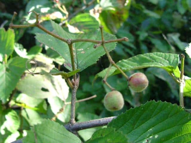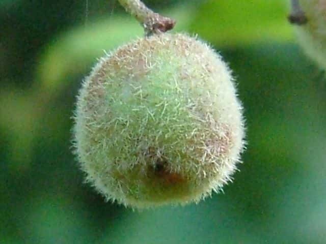 | ▼2015年9月2日 果実 上本庄 | ▼色づいてきた果実。果序軸に開出毛がある。 | |