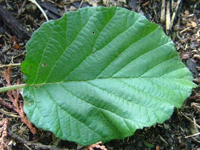 | ▼脈上に毛が多い。 | ▼裏面は毛が密生し、葉身の基部に大きな腺点がある。 | |