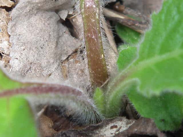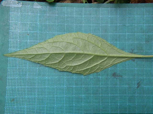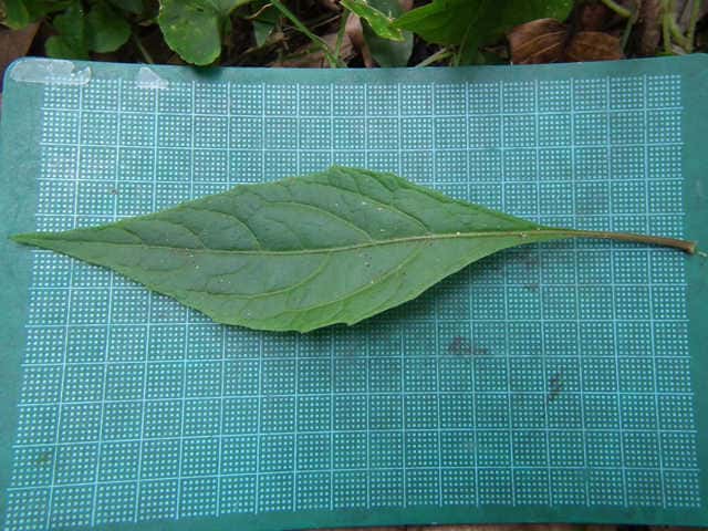 | ▼上部の葉は細く葉柄が短い。 | ▼下部の葉は卵形で長い葉柄がある。 | |