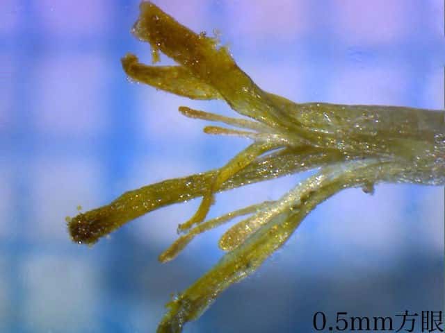 | ▼果実は約3.5mm。 | ▼先端の細い部分に粘液を出す腺がある。 | |
