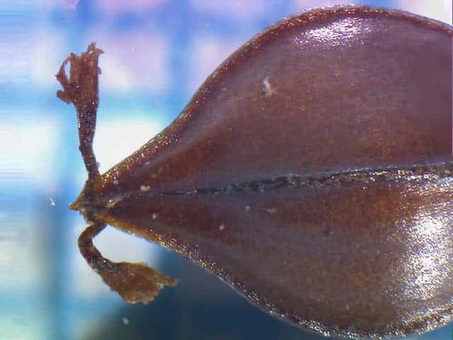 | ▼3個の瘤体が発達する。 | ▼内花被片の中に果実が1個ある。 | ▼果実は長さ約2.5mm。 |