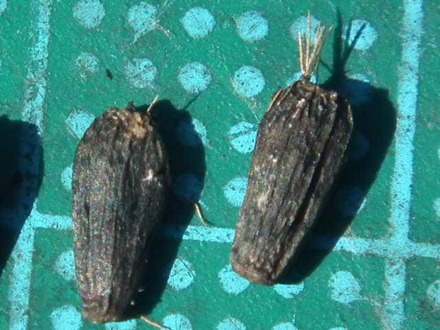 | ▼総苞の縦断面、果実がある。 | ▼果実は長さ約6mm。 | ▼刺の先端はカギ状に曲がる。 |