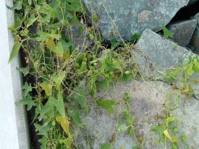 | ▼果実。 | ▼葉腋から巻きひげを伸ばして巻きつく。 | |