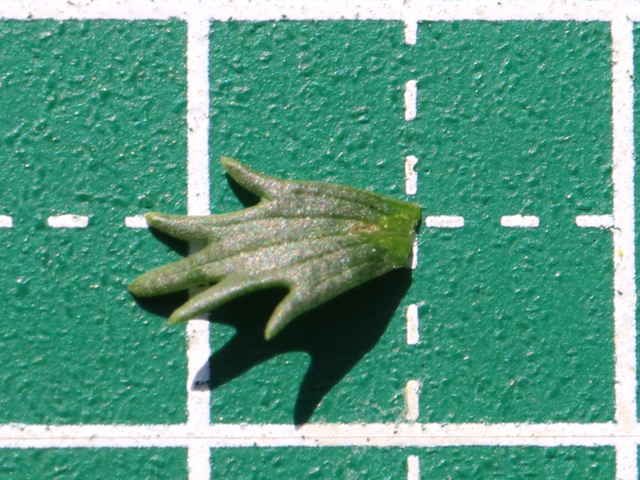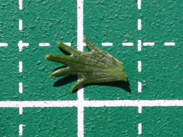 | ▼葉は小さく茎に密につく。 | ▼葉は長さ約6mm、深い切れ込みがある。 | |
