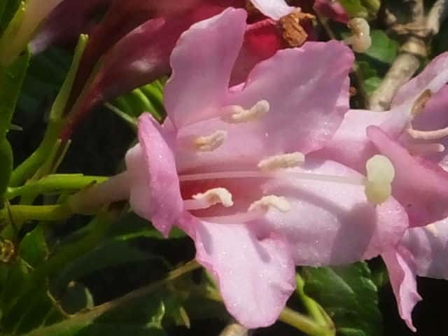 | ▼柱頭は花筒から少し出る。 | ▼花冠は長さ約3cm、萼の上で急に広がる。 | ▼花冠は直径約2cm。 |