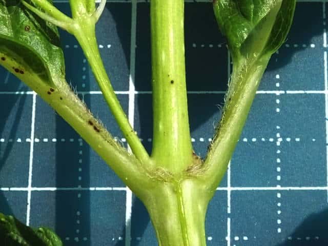 | ▼裏面は無毛、葉脈に毛が散生する。 | ▼枝は無毛、葉柄に毛がある。 | |